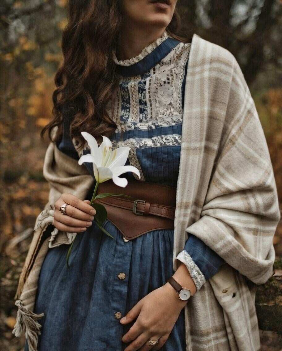 Nordische Folklore, Burgfräulein und Poetin gehen hier eine sinnliche Symbiose ein. Sie ist zart und sensibel, sie ist aber auch wild und störrisch, frei und stürmisch. In der Reife ihres Lebens schenkt sie Früchte vieler Lebensspuren und Blüten der Weisheit, während sie in Leinen wandelt und sich warm einhüllt. Sie weiß ihren Körper vor den kalten Stürmen des Lebens zu schützen und ihren Kindern eine anmutige Mutter zu sein, die in Würde ihre Ahnenlinie lebt.