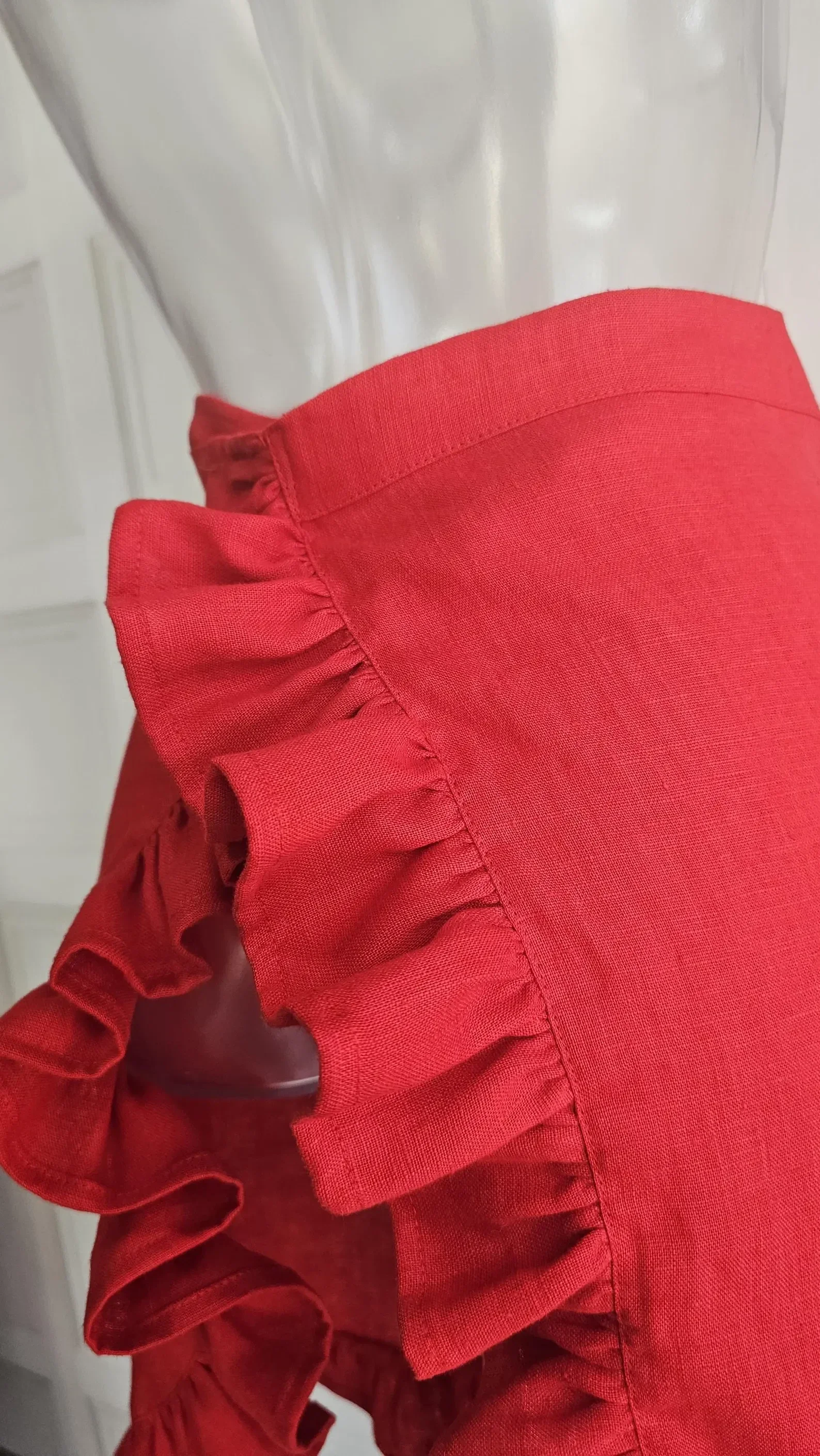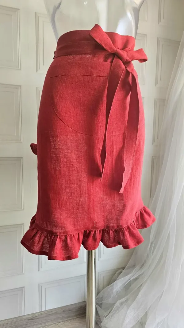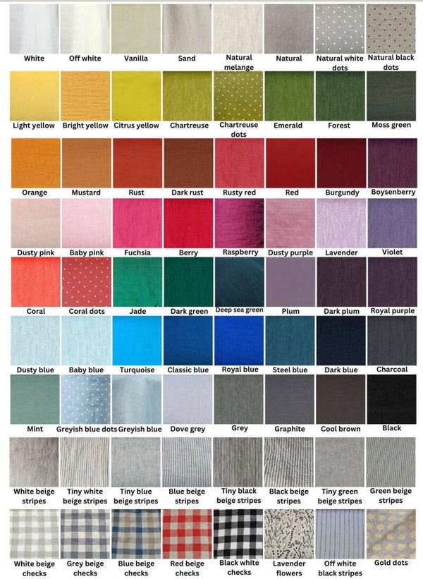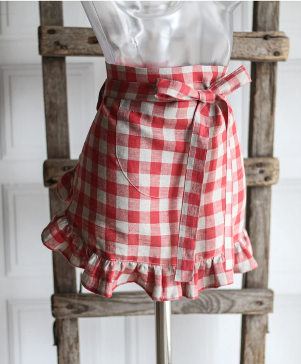 Diese geraffte Schürze mit Rüschen ist aus gewaschenen und weichen litauischen Leinen von höchster Qualität in alter Tradition handwerklich in Litauen hergestellt. In 2 unterschiedlichen Längen und 72 Farben und Mustern erhältlich.