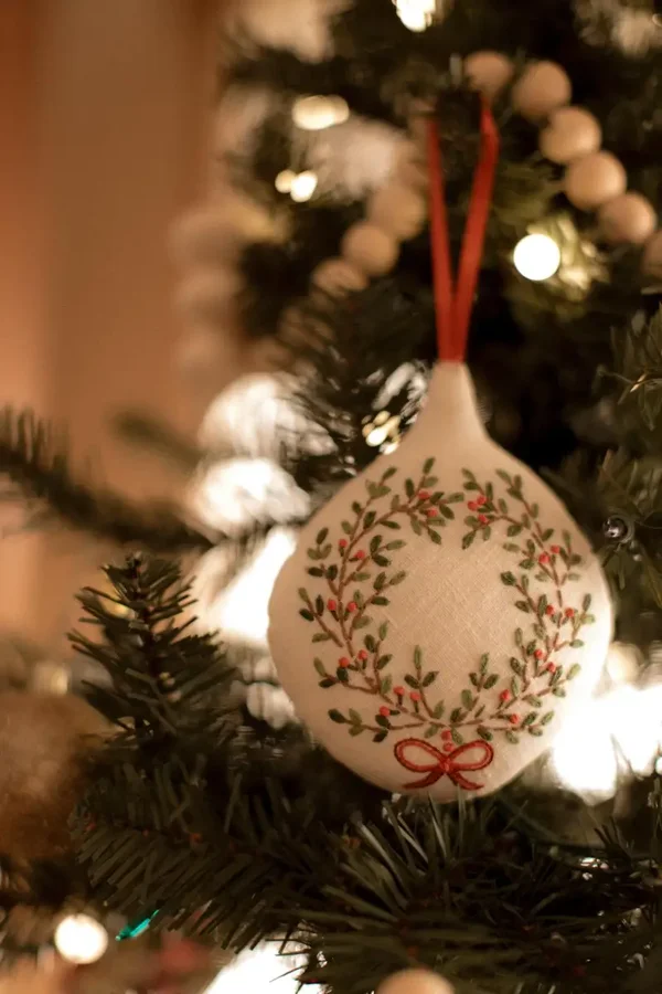 Handgemachter, handbestickter Leinen Weihnachtsbaumschmuck